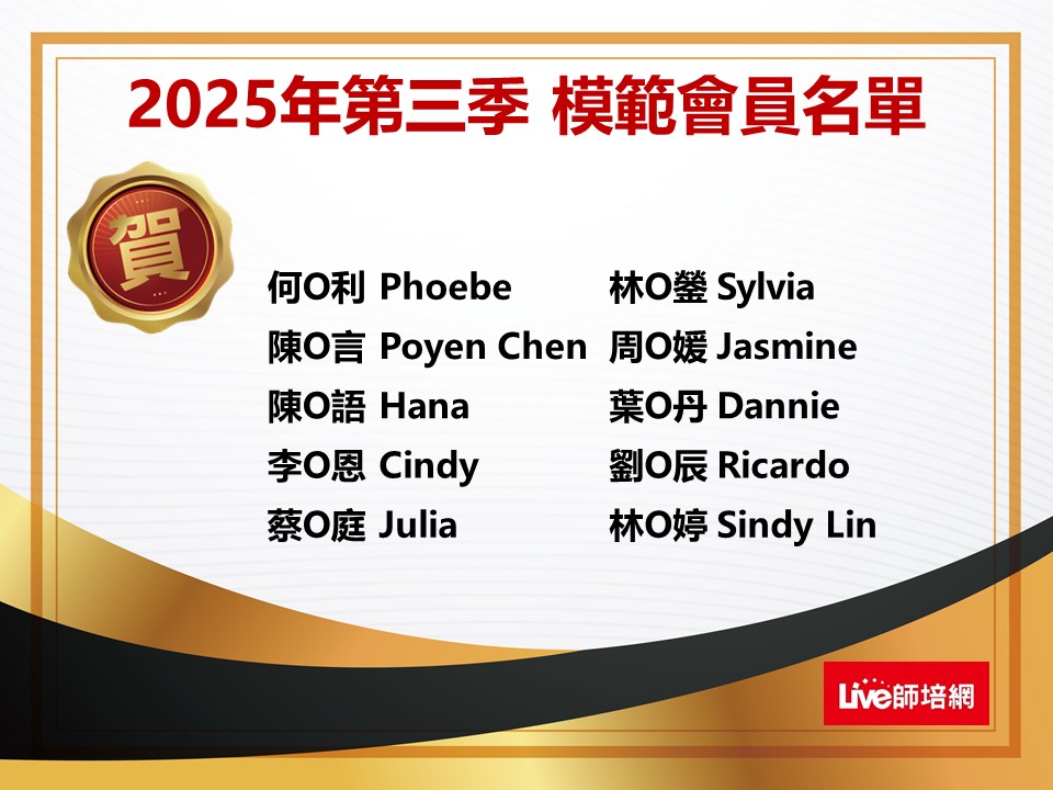 ★回饋分享文:「模範會員」於專屬留言板提供80~100字上課經驗分享,可再獲得會員點數30點,並公布於師培網「學員回饋」。